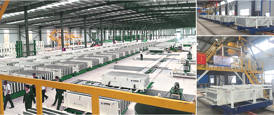 - The equipment can produce prestressed inner wall panel and outer wall panel (foaming board, compound board and sandwich board) and its performance has reached the leading level in domestic similar products with annual output of 80000 ㎡ per wall panel.