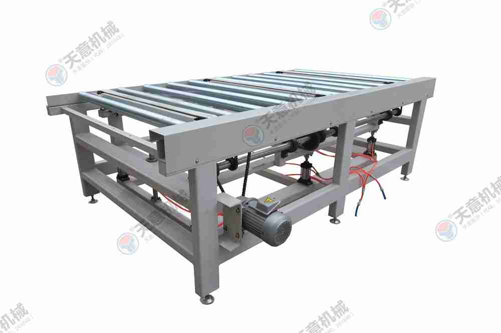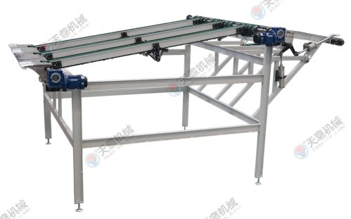 適用于背涂膠硅酸鈣板、水泥纖維板、玻鎂板等進行流水作業(yè)時的工件輸送。采用尼龍輪輸送,既能減少與膠面的接觸面積還能保證板材的平穩(wěn)輸送。