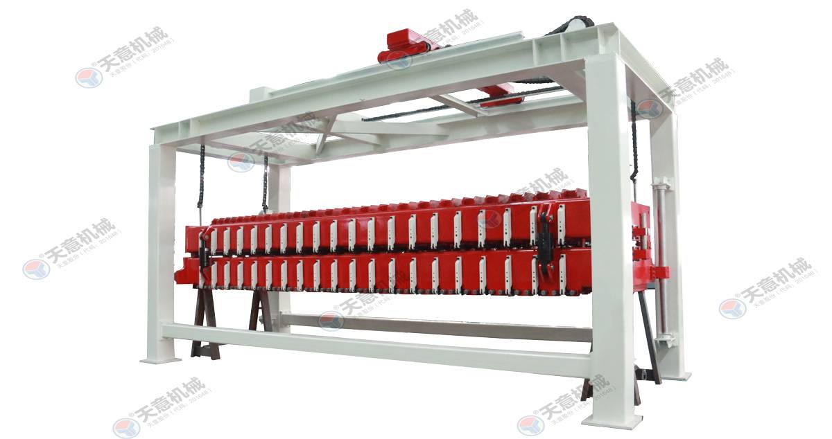 半成品翻轉(zhuǎn)臺:用于切割完成的坯體在蒸養(yǎng)前去除頂部及底部廢料;