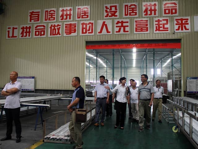 緊接著,參觀了天意樣板別墅、集成房屋、設(shè)備生產(chǎn)車間、鋁型材加工基地。專家領(lǐng)導團對我公司擁有的先進助力建筑垃圾廢棄物資源化利用的擠壓墻板生產(chǎn)線給予了高度評價。