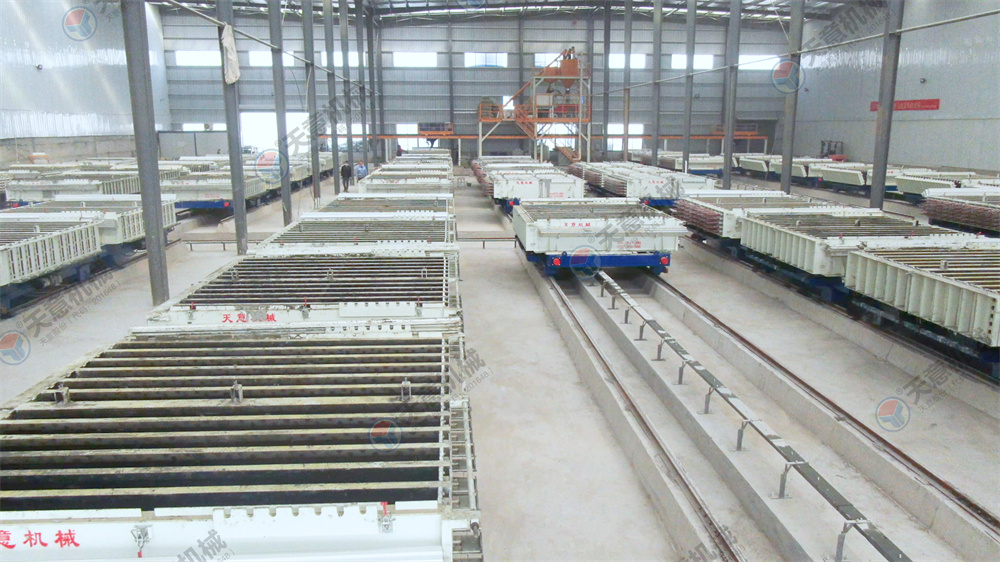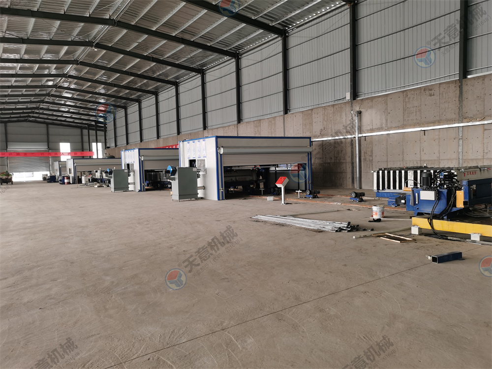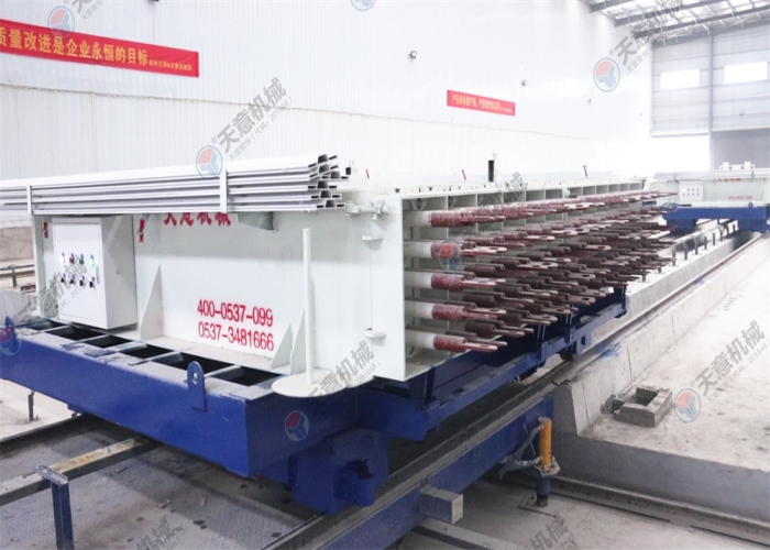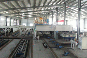 10.墻板機(jī)雙向開合,采用卯榫工藝焊接,確保大板焊接厚度以至,大板經(jīng)四面刨銑,能保證生產(chǎn)線上的模車一至,以便于后期整體上成型,自動抽芯機(jī),自動涂油機(jī)的安裝。
