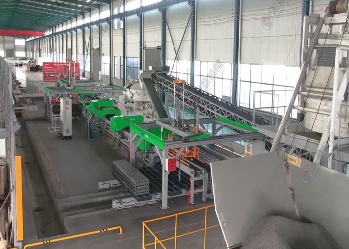 擠壓墻板生產(chǎn)線結(jié)構(gòu)緊湊,自動(dòng)化程度高,設(shè)備主機(jī)固定,墻板成型時(shí)物料受擠壓和振動(dòng)同時(shí)作用,連續(xù)自動(dòng)擠壓振搗成型,保證墻板具有良好的密實(shí)性和外形尺寸,成型后進(jìn)行初凝養(yǎng)護(hù)。板坯移動(dòng)方便,場(chǎng)地使用靈活、利用效率高。成型工段推料擠壓螺旋變頻調(diào)速,由中央控制器調(diào)整控制灰渣板成型的密實(shí)程度,實(shí)現(xiàn)灰渣板的連續(xù)自動(dòng)流水線生產(chǎn)。由于采用低水灰比的干硬性混合料擠壓成型,可得到強(qiáng)度和密實(shí)度較高的空心墻板。自動(dòng)化連續(xù)生產(chǎn),效率高,質(zhì)量一致性高,保障了墻板品質(zhì)。廣泛用于框架結(jié)構(gòu)和鋼結(jié)構(gòu)建筑物。