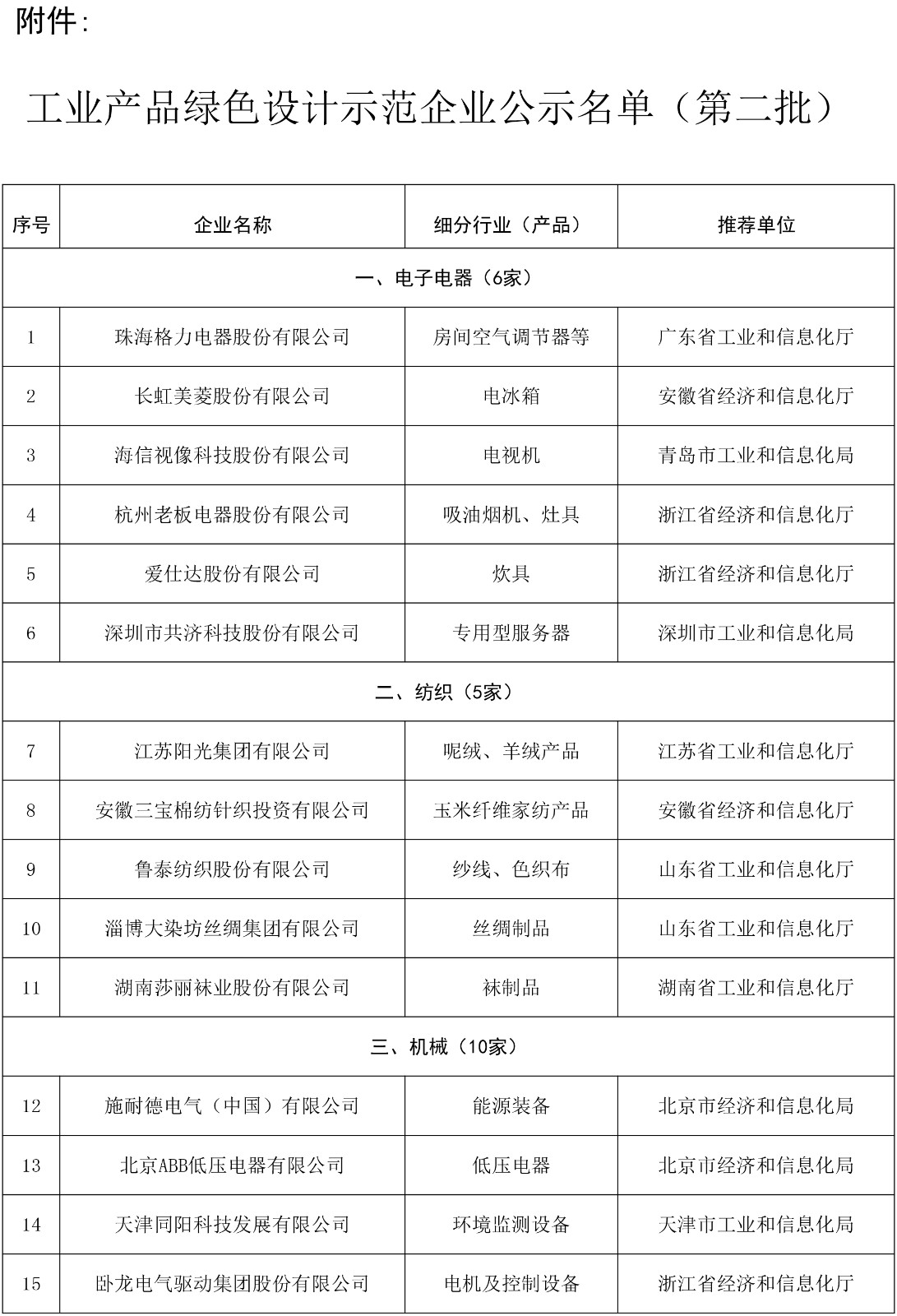 為加快推行工業(yè)產(chǎn)品綠色設(shè)計(jì),促進(jìn)制造業(yè)高質(zhì)量發(fā)展,根據(jù)《工業(yè)和信息化部辦公廳關(guān)于組織推薦第二批工業(yè)產(chǎn)品綠色設(shè)計(jì)示范企業(yè)的通知》(工信廳節(jié)函〔2020〕110號(hào)),經(jīng)企業(yè)自評(píng)估、省級(jí)工業(yè)和信息化主管部門(或中央企業(yè))推薦及專家評(píng)審,工信部將擬確定為工業(yè)產(chǎn)品綠色設(shè)計(jì)示范企業(yè)(第二批)的名單予以公示。